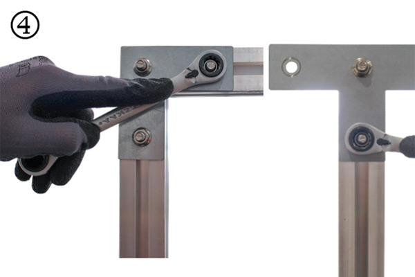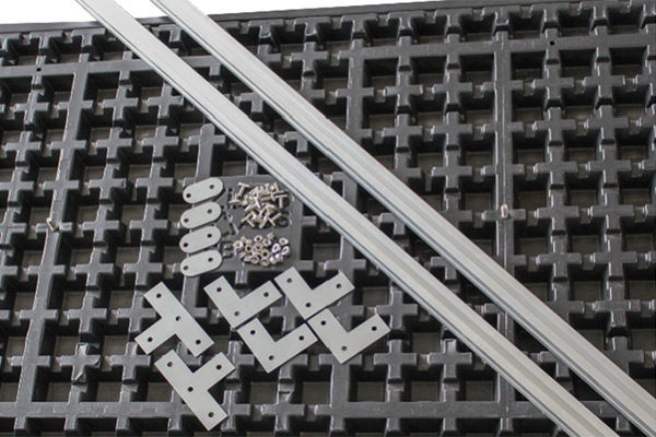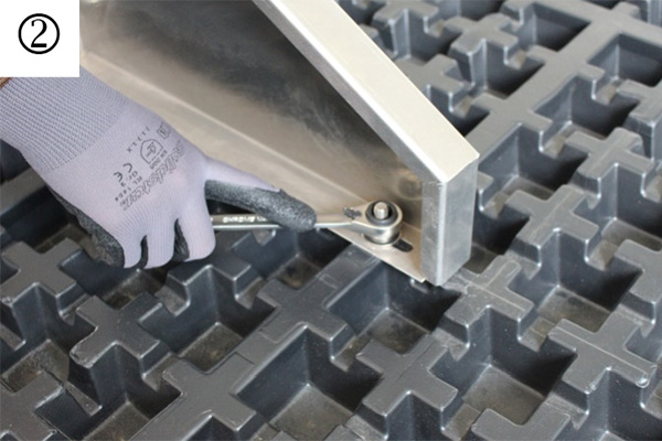 Waagrechte Koppelungsprofile mit Eck- bzw. Mittelverbinder und Befestigungsmaterial mit SGS 90 verbinden, Ablängen der Koppelungsprofile nach Modulgröße.