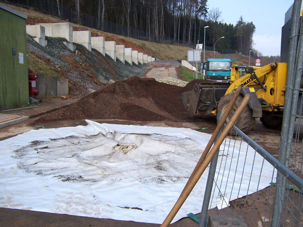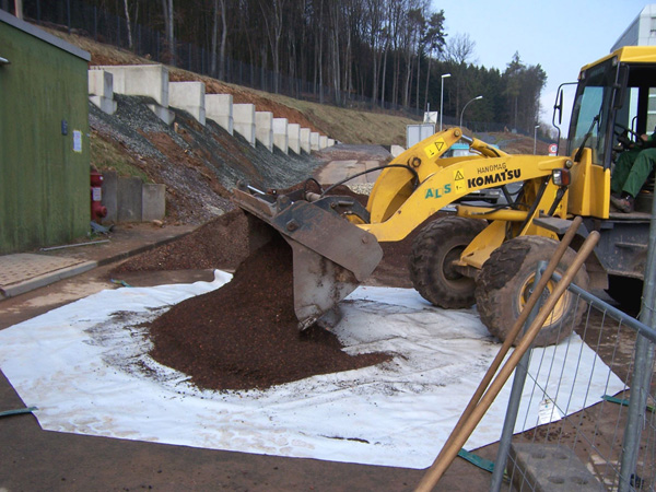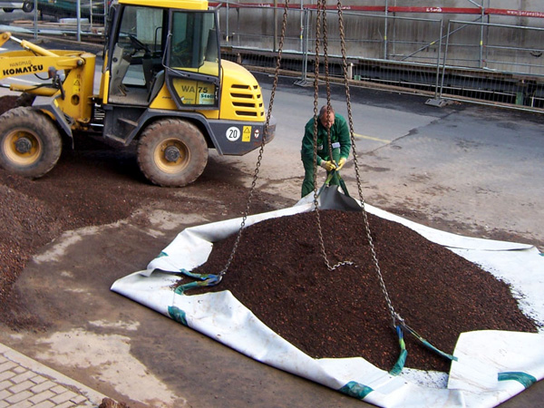 - Die Befüllung mit dem Radlader kann beginnen (max. 5 Tonnen loses Schüttgut in die Mitte der Plane kippen).